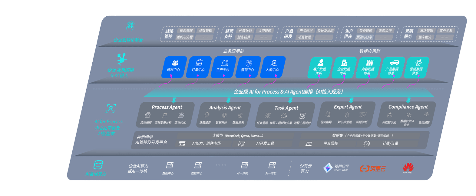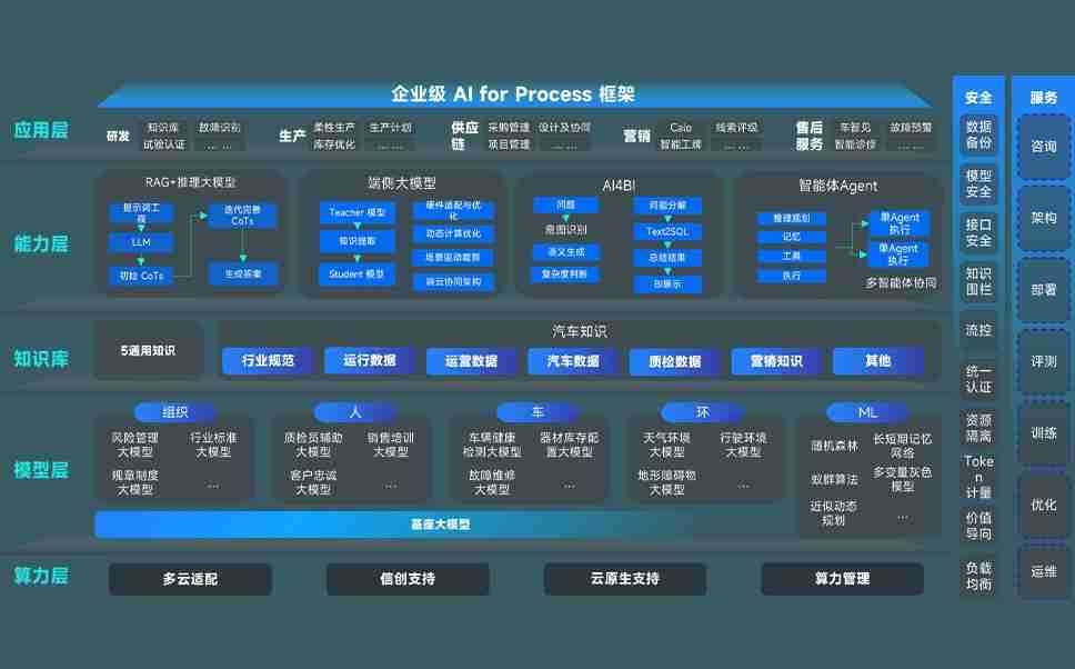 端到端的一站式AI工作空间深度融合了从企业战略规划到日常经营的全流程业务板块,,,,定向解决车企内部领域多、、、、部门多、、、、链条长、、、场景碎片化等难题,,,,支持车企快速构建以AI为核心的生产力写作体系,,,实现任务执行与AI能力的无缝集成与交互